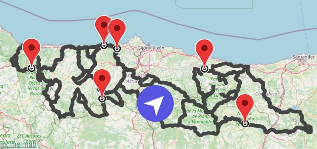 Omdat we de stadse drukte willen mijden en zo snel mogelijk in het hart van de Picos willen rijden, beginnen we met dag 0, de zaterdag waarop je naar Oviedo vliegt. Je wordt daar welkom geheten door ons en naar het hotel geloodst waar je motor al staat te trappelen van ongeduld. Op de 1e dag laad je na het ontbijt je spullen op de motor voor een route van een dikke 315 km door de bergen. Voor de deelnemers die een rustiger tempo wensen is er net als de meeste andere dagen een kortere route beschikbaar. Eindpunt van deze dag zijn de Picos de Europa waar de hoogste bergen van onze reis liggen. In het hotel waar we ’s avonds aankomen slapen we 2 nachten, want de 2e dag rijden we een ronde om de Picos en kunnen we de bagage lekker bij het hotel laten. De laatste 40 km van de route zijn door Mink zo gewaardeerd dat hij er op stond dat we die de volgende dag weer rijden. Dag 2 wordt duidelijk dat er geen weg over de bergen ligt, gelukkig wel er langs met verschillende mogelijkheden om van buitengewoon mooi uitzichten en wegen te genieten. Er zijn 4 mogelijkheden om vanuit de route de mooiste plekken te bezichtigen. In het roadboek wat je toegezonden zal worden als je je voor deze reis aangemeld hebt, zal uitgelegd worden wat waar te zien is. De deelnemers die veel kilometers willen rijden zullen geen keuze hoeven maken, de deelnemers die minder willen rijden zullen dat wel. In ieder geval op tijd beginnen…. nou ja da’s in Spanje ook pas tegen 9 uur en/of niet te vroeg aan het bier. Afgezien van 21 km zijn de wegen zeer goed en dat is logisch: door heel Noord Spanje lopen etappes van de Vuelta en daar worden de wegen voor opgeknapt.